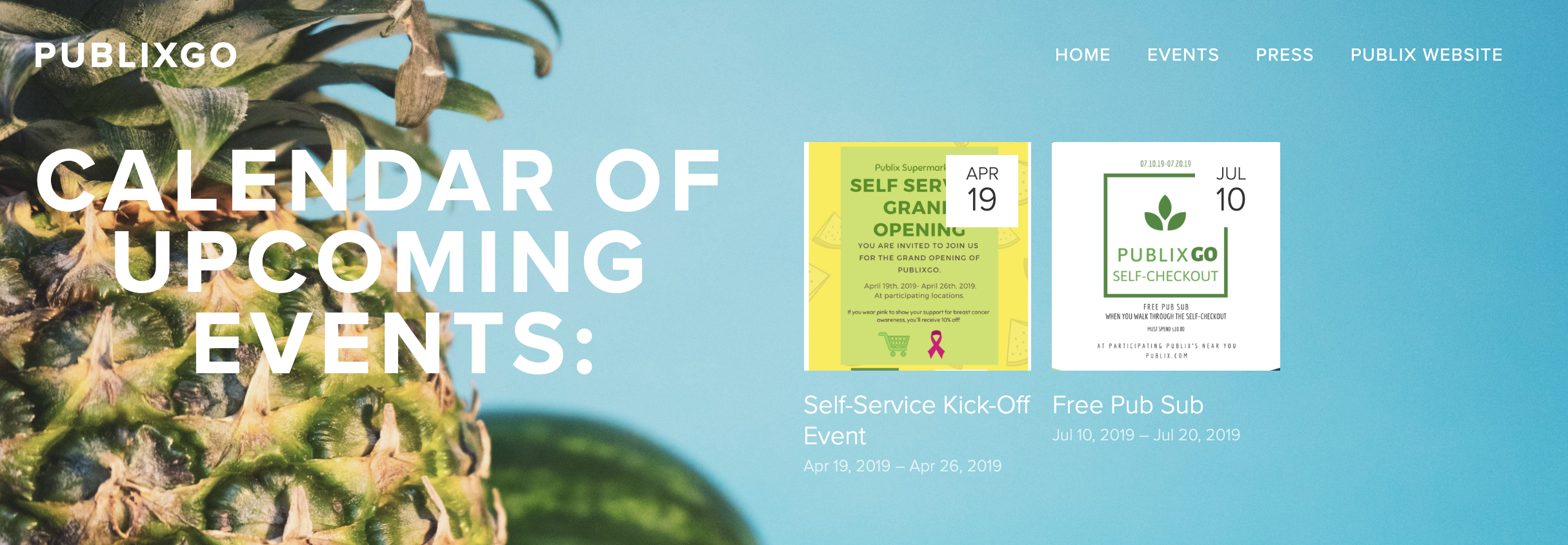 A picture of the website I created to fake promote events for the Publix company.